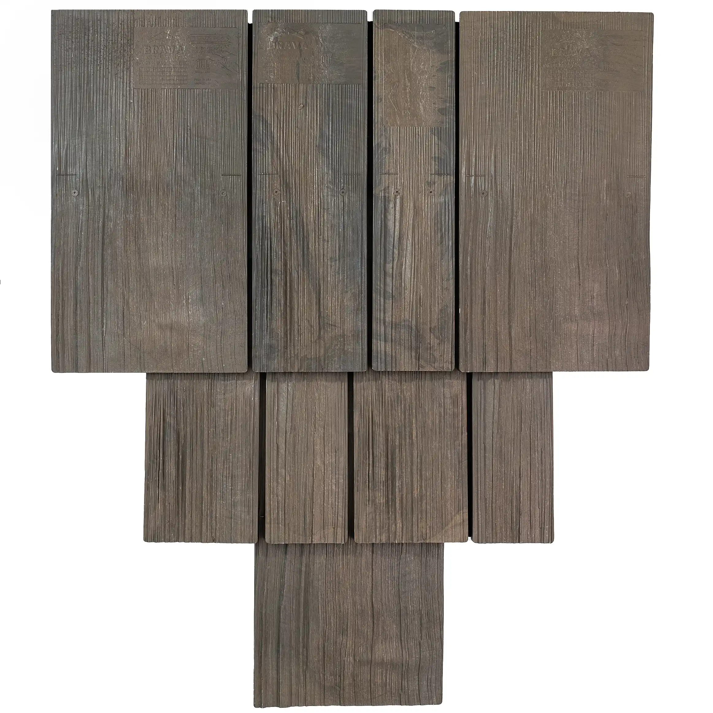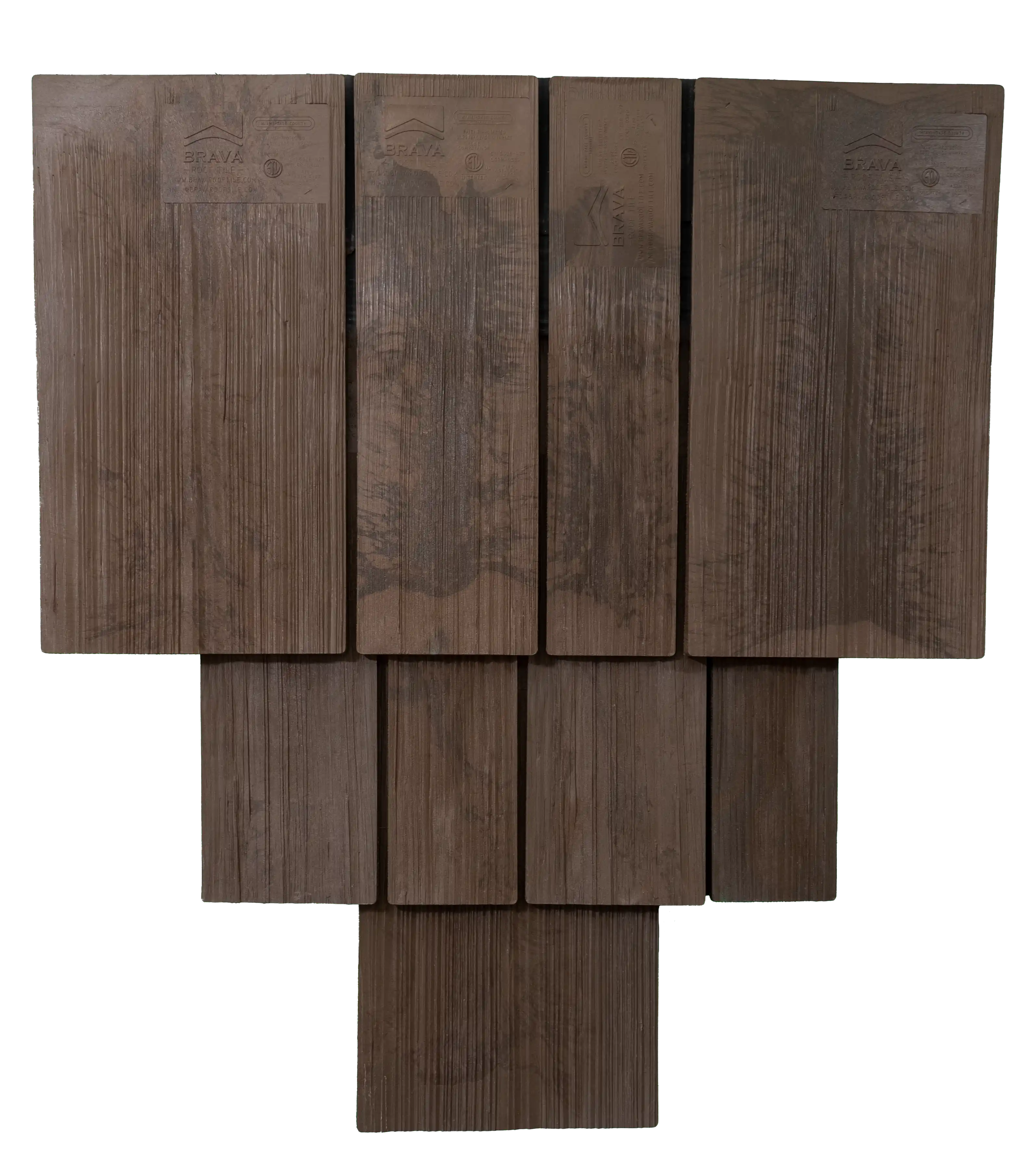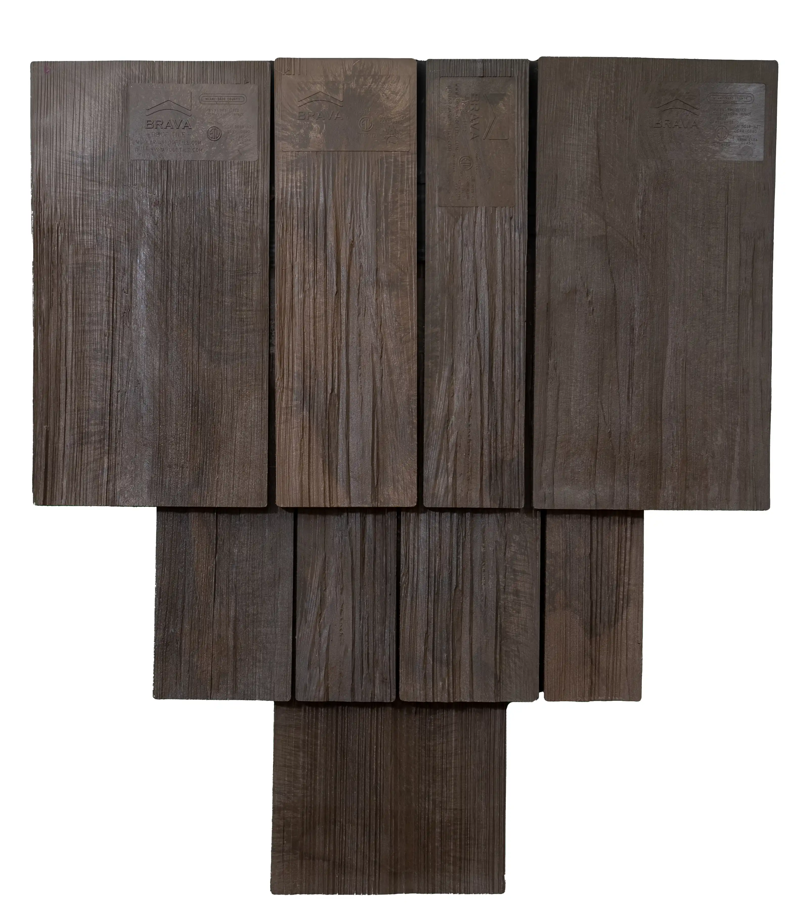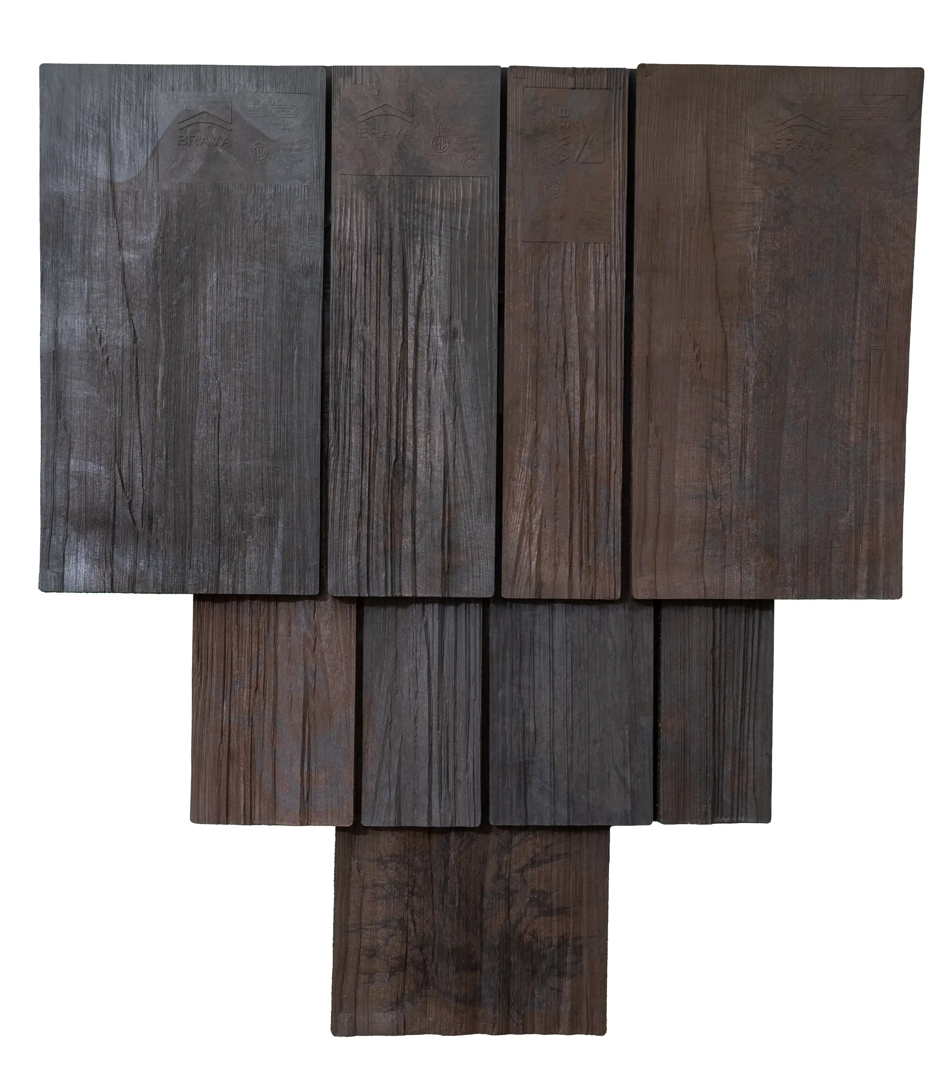 Brava composite shake tile offers the aesthetics of hand split cedar, that even the most fastidious consumer would agree is stunningly the same. Our multi-colored synthetic roof tile is unparalleled in the composite roofing market and is available in three different widths. Our product can be installed in straight courses or in a staggered application to give it a more rugged appearance. No other imitation shake comes close to our authentic appearance and quality.