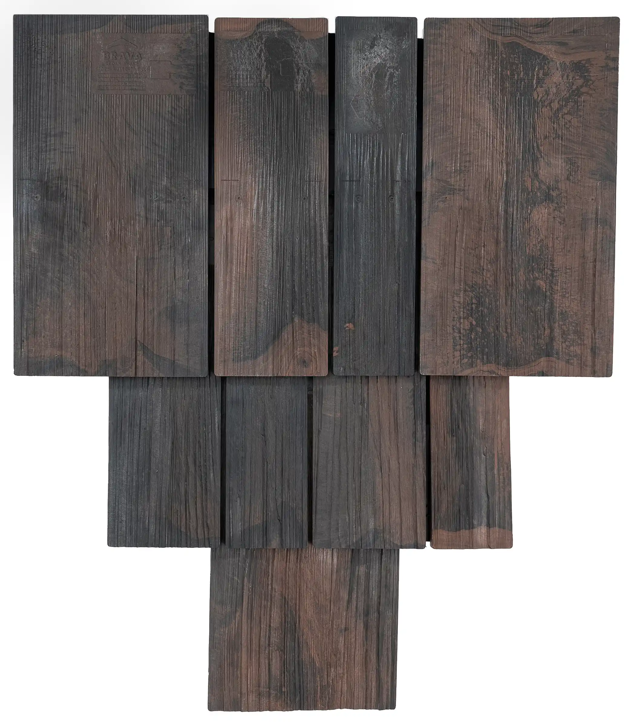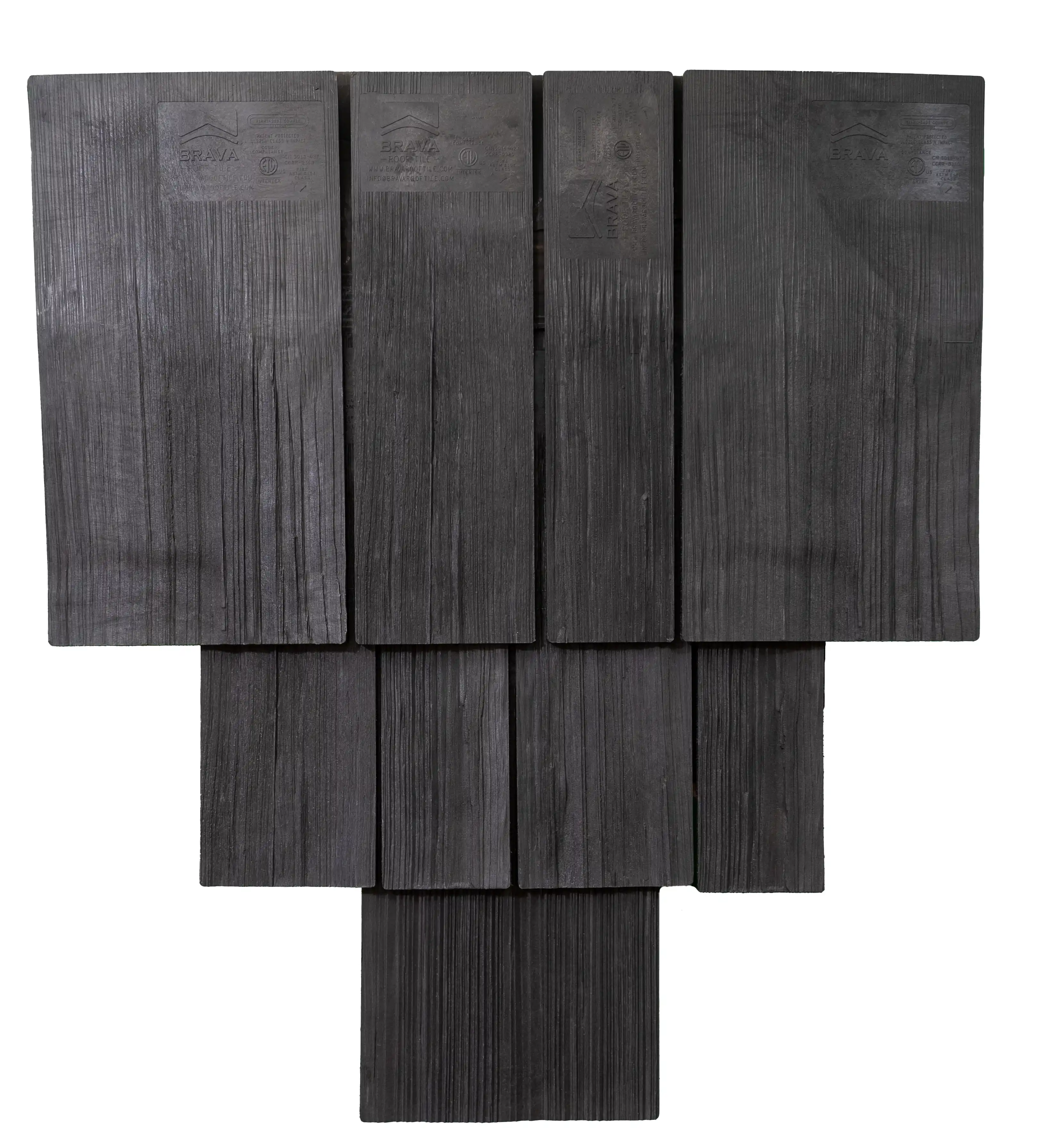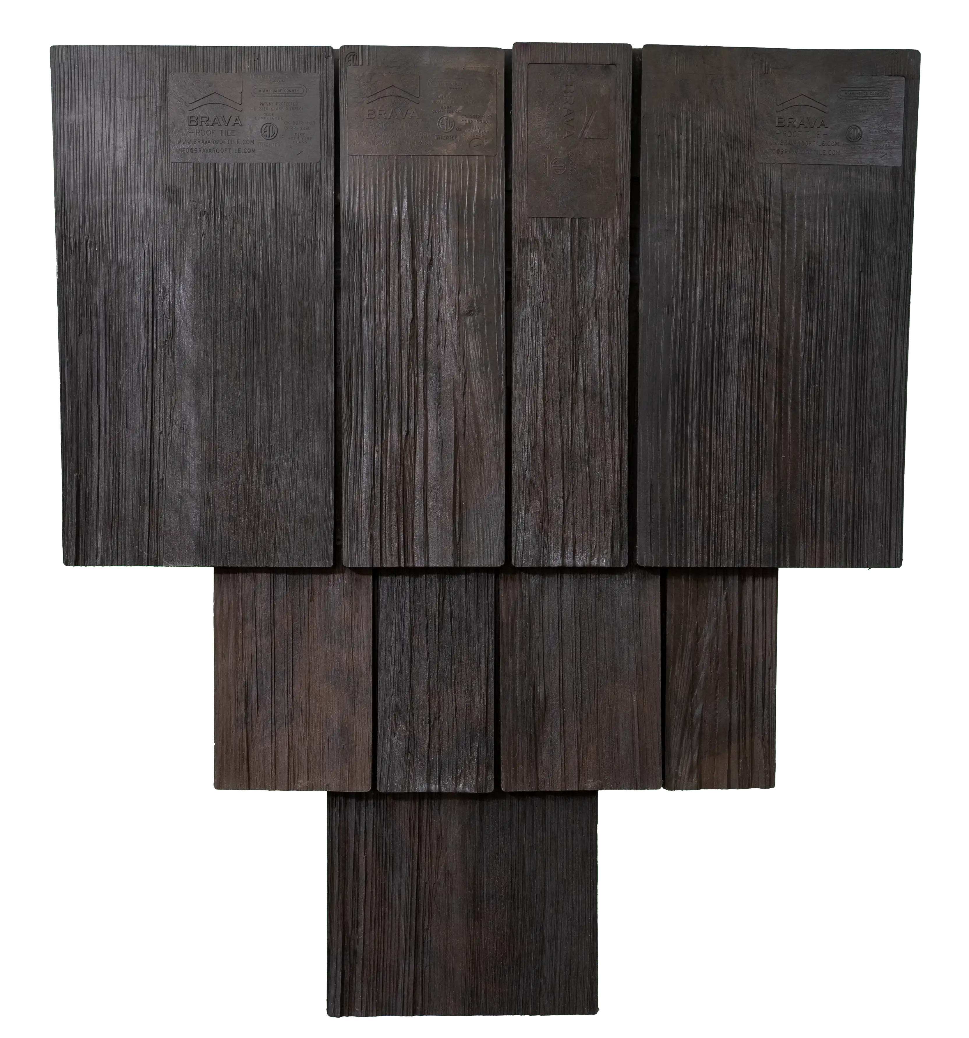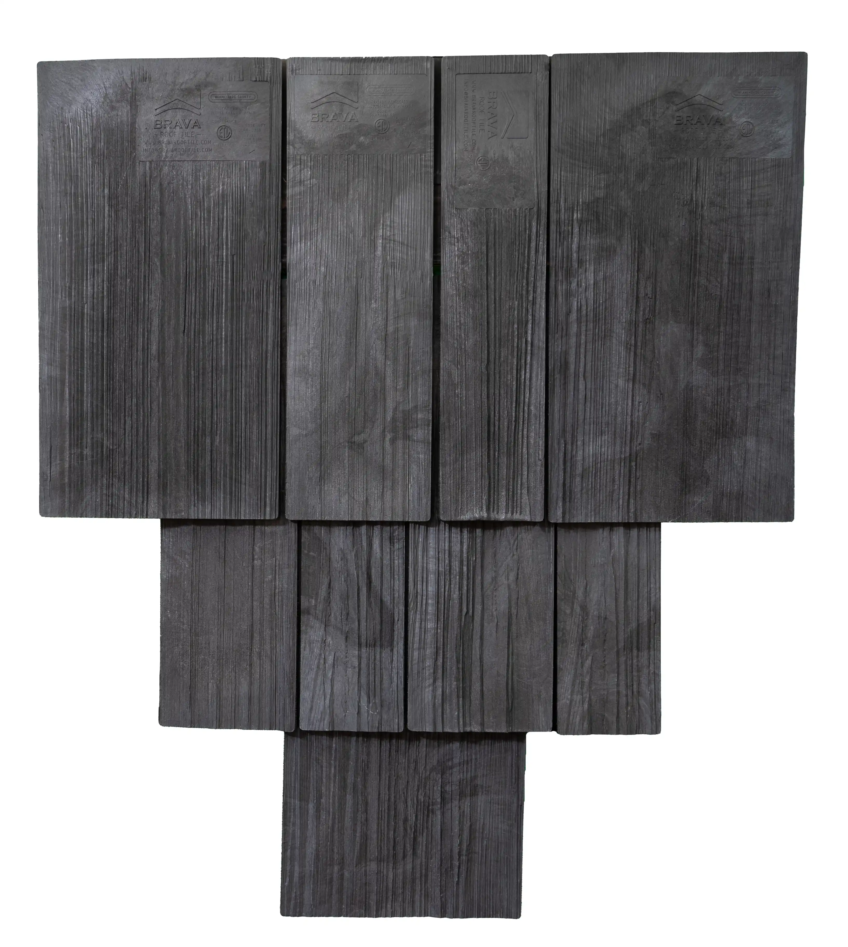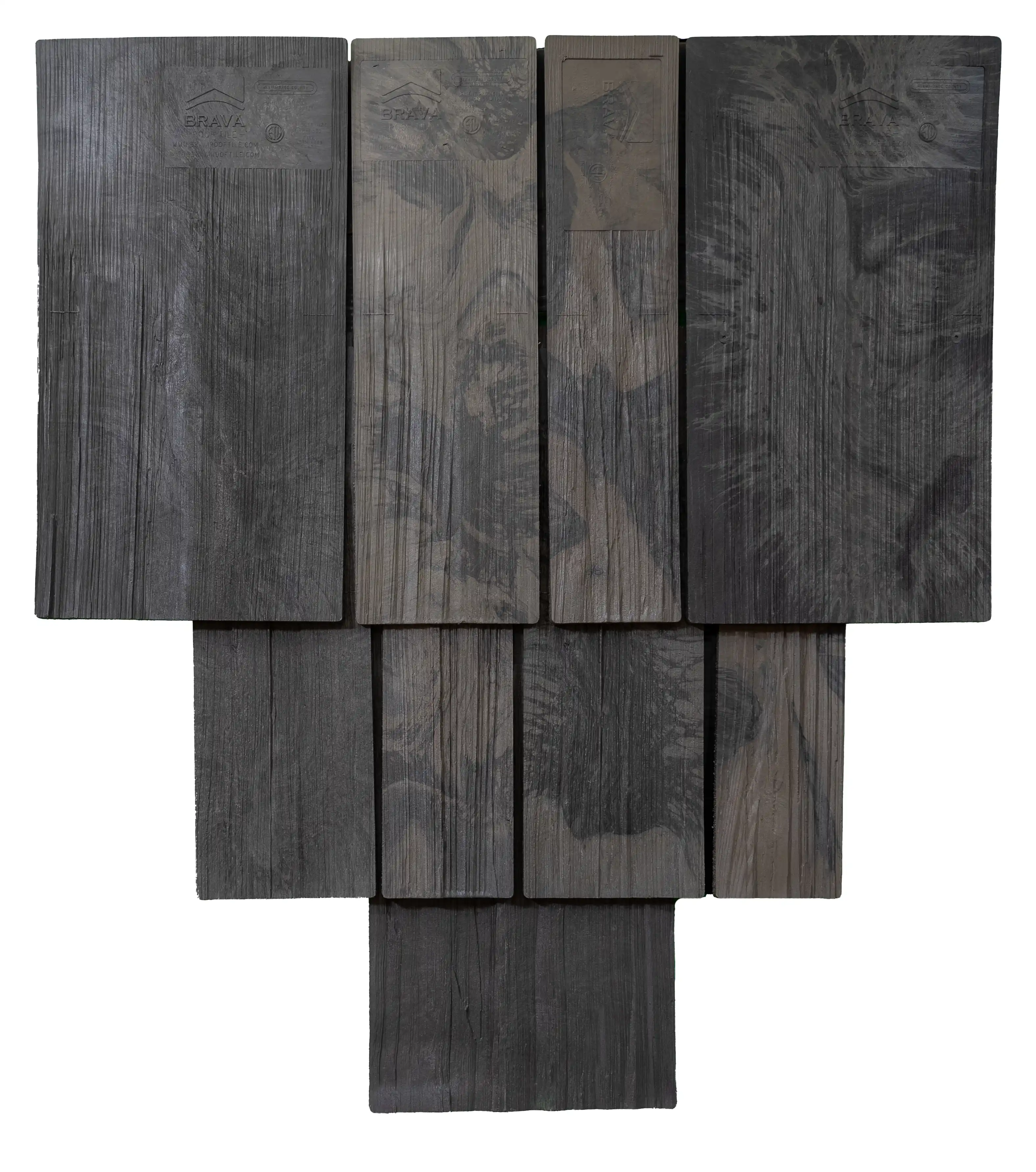 Brava composite shake tile offers the aesthetics of hand split cedar, that even the most fastidious consumer would agree is stunningly the same. Our multi-colored synthetic roof tile is unparalleled in the composite roofing market and is available in three different widths. Our product can be installed in straight courses or in a staggered application to give it a more rugged appearance. No other imitation shake comes close to our authentic appearance and quality.